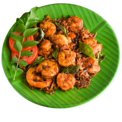 Spicy, crispy prawns seasoned with aromatic herbs and spices.
