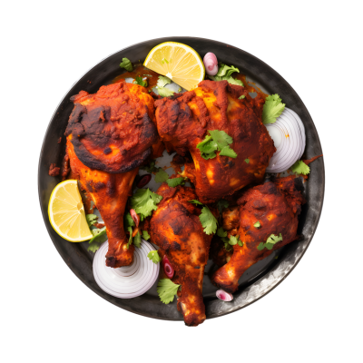 Juicy, marinated chicken grilled to perfection in a clay oven, infused with vibrant, flavorful spices.